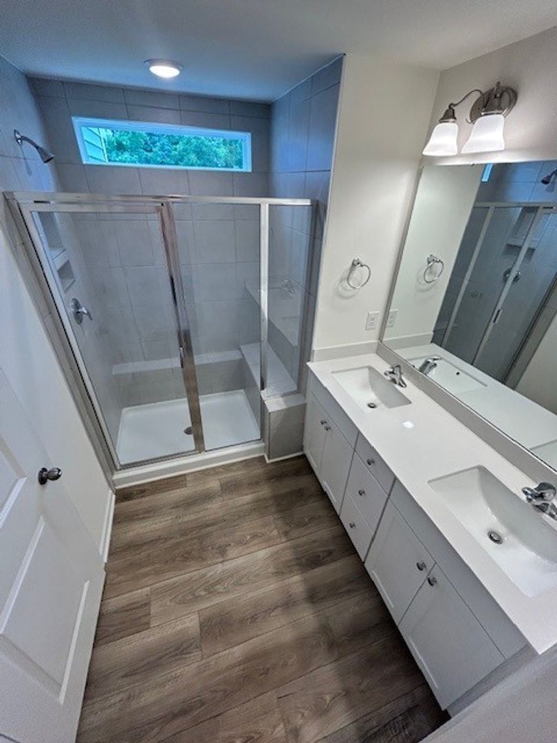 Modern 2BR, 2.5BA townhouse featuring an open floorplan with dining area and eat-in kitchen. Enjoy granite countertops, tile backsplash, stainless steel appliances, and a walk-in pantry. Each bedroom is a private suite with a walk-in closet and quartz double-sink bath; the primary includes a luxury tile shower with seat.