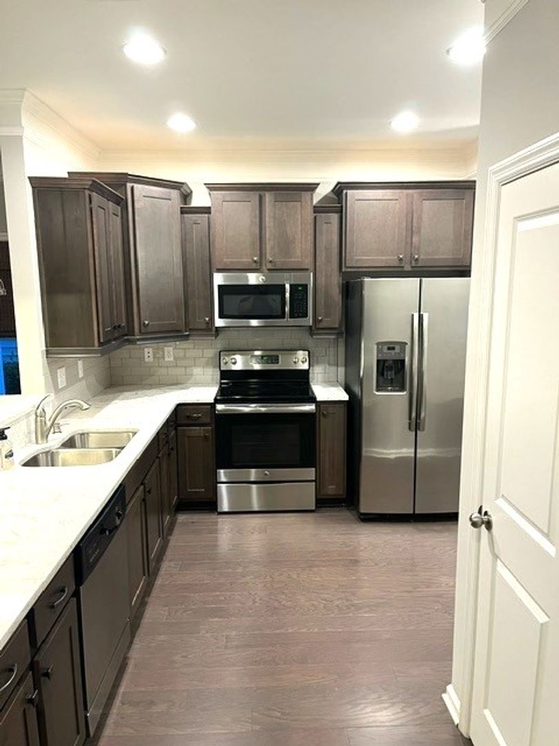 Coming soon to Goose Creek, SC—this beautifully appointed former model 2-bedroom, 2.5-bath end-unit townhome offers added privacy and modern comfort. The stylish kitchen features quartz countertops, a tile backsplash, and recessed lighting, complemented by elegant hardwood floors on the first level. Enjoy cozy evenings by the gas fireplace, ceiling fans in the family room and bedrooms, window coverings for added privacy, and a WiFi-enabled programmable thermostat. Convenient upstairs laundry and exterior flood lighting add to the home’s comfort.